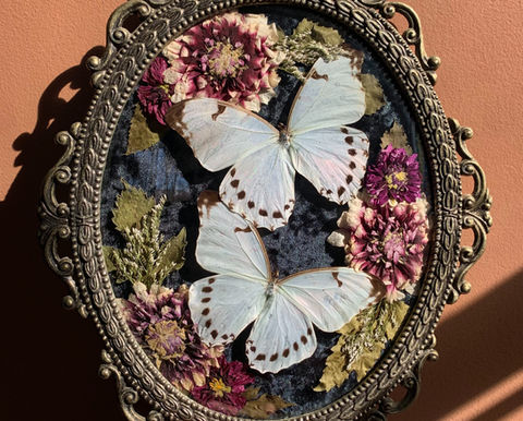 Rosy Bones Co provides handmade sustainably sourced jewelry and preserved Nature home decor. We have a love for the entire Ecosystem and are dedicated to bringing a focus to the delicateness and beauty of the natural world that surrounds us everyday. We love foraging for materials and using vintage/ antique frames for that added touch of character.